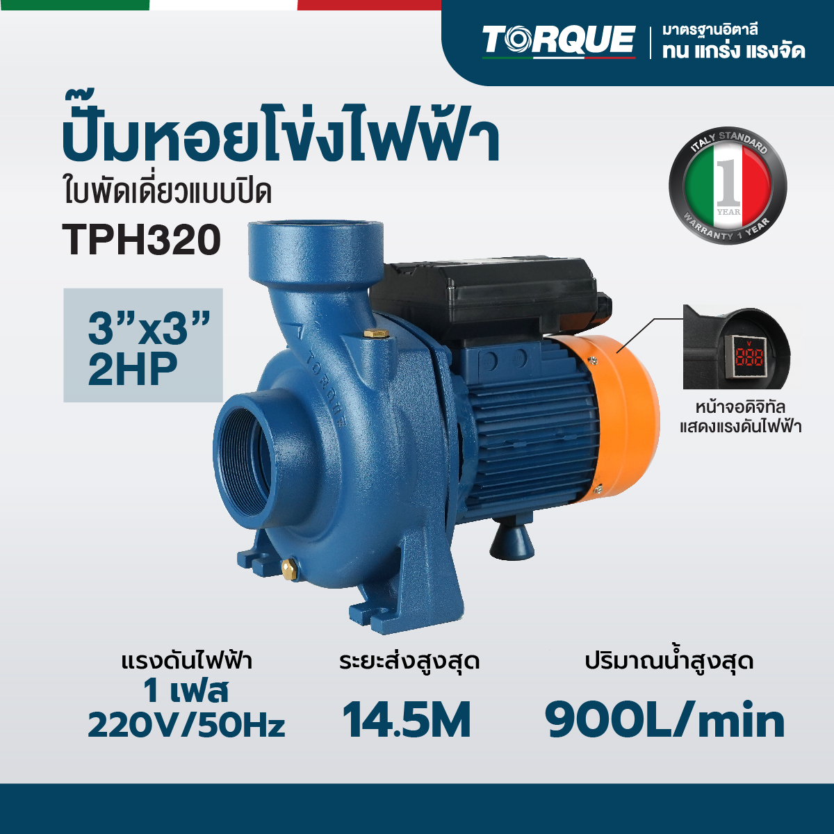 TORQUE ปั๊มหอยโข่งไฟฟ้าใบพัดทองเหลืองแบบปิด รุ่น TQ-TPH320