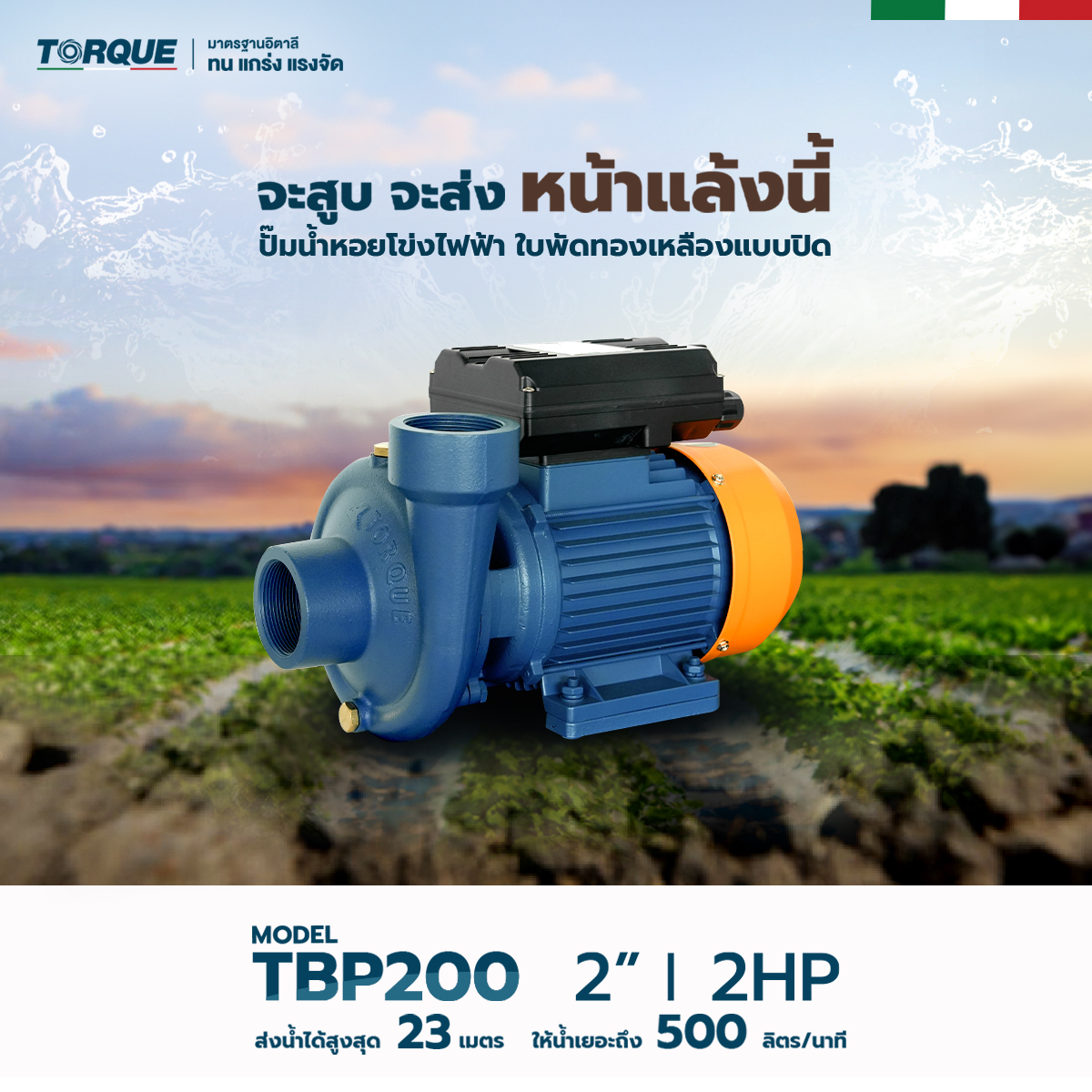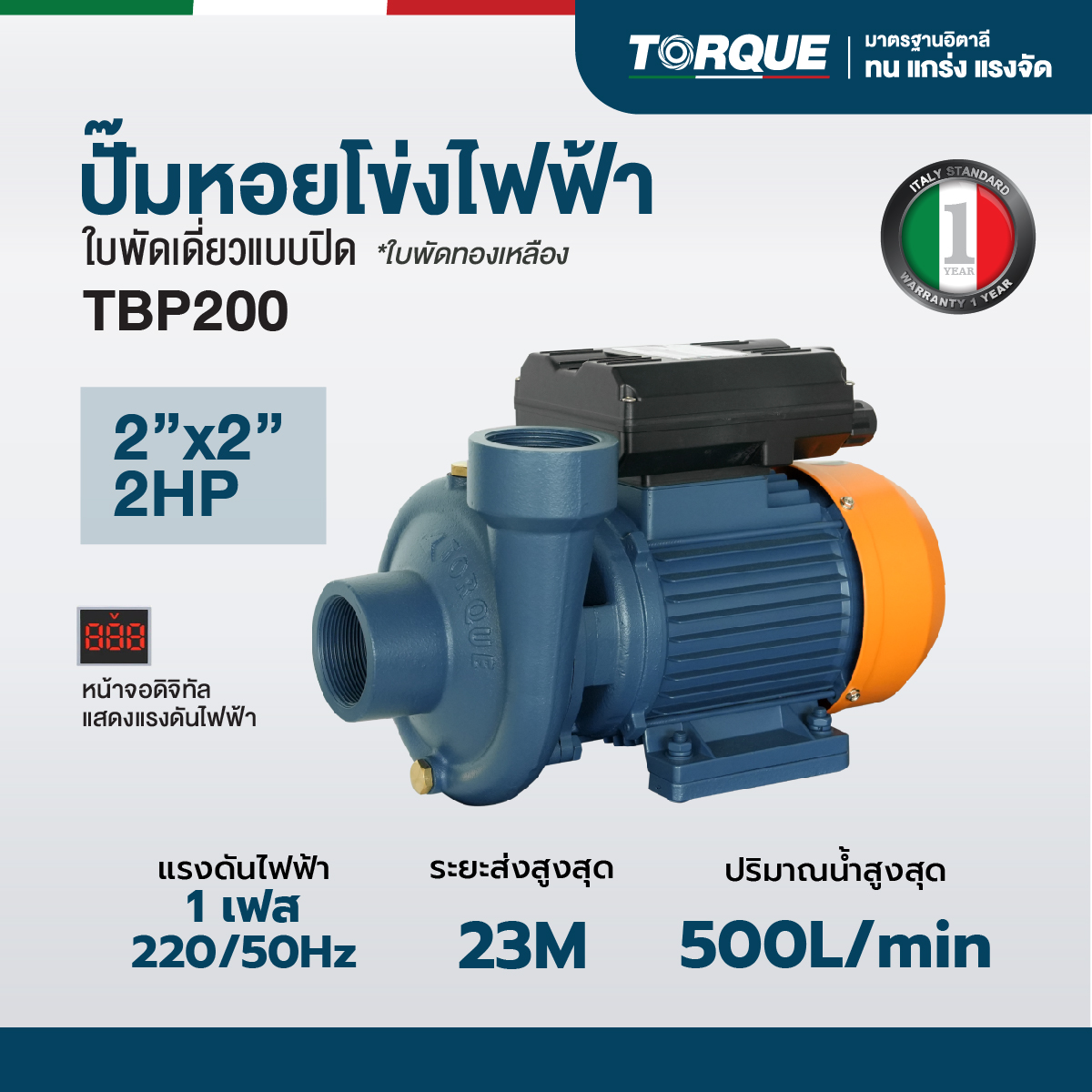 TORQUE รุ่น TQ-TBP200 ปั๊มหอยโข่งไฟฟ้าใบพัดเดี่ยวแบบเปิด ออกแบบเพื่อรองรับการใช้งานที่ต้องการแรงดันน้ำสูงและปริมาณน้ำมาก เหมาะสำหรับงานเกษตรกรรม โรงงานอุตสาหกรรม หรือระบบสูบน้ำทั่วไป ตัวเครื่องผลิตจากวัสดุคุณภาพสูง ทนทานต่อการกัดกร่อน ใบพัดแบบเปิดช่วยลดการอุดตันของสิ่งสกปรกในน้ำ และสามารถดูแลรักษาได้ง่าย